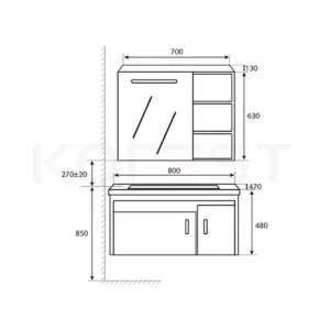 – Kích thước tủ gương : 700*130*630 mm