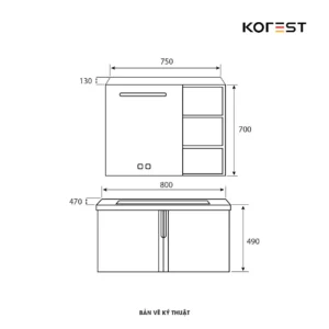 Bộ tủ chậu lavabo cao cấp CKR-TC8239