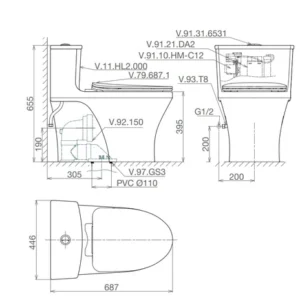 Bàn cầu một khối HL2 có kích thước nhỏ gọn chỉ L687 * W446 * H655, phù hợp cho mọi diện tích và yêu cầu sử dụng.