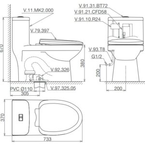 Bản vẽ kích thước xí bệt MK2 Viglacera 1 khối