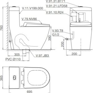 Bản vẽ bệ xí bệt VI99 Viglacera 1 khối