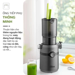 - Ống tiếp nguyên liệu dài: Dễ dàng ép rau nguyên cành như cần tây, cà rốt.