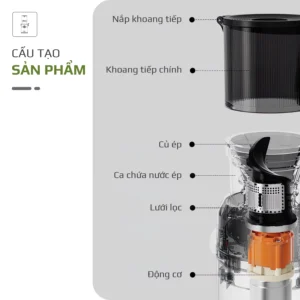 - Khoang tiếp nguyên liệu lớn: Ép đa dạng rau củ, trái cây với kích thước lớn.