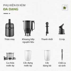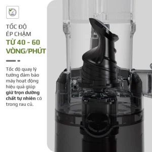 - Nhờ động cơ mạnh mẽ, máy ép có thể nghiền nát nguyên liệu một cách hiệu quả, giúp ép kiệt bã hơn so với các loại máy có công suất thấp. Nhờ vậy, bạn sẽ thu được nhiều nước ép hơn, đồng thời giữ lại được tối đa dưỡng chất từ trái cây và rau củ.