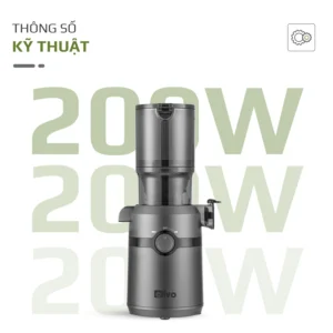 - Công suất ép 200W mạnh mẽ là một trong những yếu tố quan trọng quyết định hiệu quả hoạt động của máy ép trái cây.