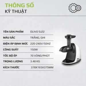 - SJ22 là dòng máy ép chậm mới nhất đến từ thương hiệu OLIVO với thiết kế hoàn thiện, công năng tối ưu nhất đem lại hiệu quả ép đáng kinh ngạc cho gia đình bạn. Cùng khám phá những tính năng nổi bật ở chiếc máy ép “nhỏ nhưng có võ” này nhé!