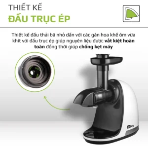 - Đặc biệt, với thiết kế đường xoắn ép 7 đoạn giúp tăng gấp đôi số lần tiếp xúc trong mỗi vòng ép. Đầu trục được thiết kế thu nhỏ dần với các gân hoa khế kết hợp với phần đầu trục vừa khít giúp thực phẩm được vắt kiệt lần cuối trước khi được đẩy ra đồng thời giúp chống kẹt máy.