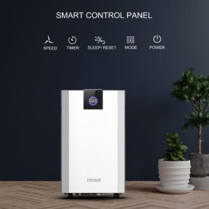 Máy hút ẩm Steiger STG – 855BW 55L sở hữu lực hút cực kỳ lớn. Trong điều kiện nhiệt độ môi trường là 30℃, độ ẩm RH80%, máy có khả năng hút được 55L nước từ trong không khí trong 1 ngày. Mang lại không khí khô thoáng trong những ngày ẩm ướt nhất, bảo quản quần áo và đồ dùng trong nhà khỏi nguy cơ bị ẩm mốc.