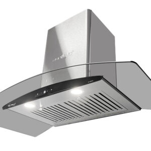 Là dáng hút mùi kính cong gắn tường, thân máy được làm từ inox cao cấp và kính màu Tempered 5mm. Với hệ thống điều khiển cảm ứng 3 tốc độ hút linh hoạt giúp người sử dụng có thể tùy chọn mức độ hút phù hợp với nhu cầu.