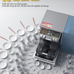 Dễ dàng sử dụng: Người dùng có thể nhanh chóng xếp đặt đồ dùng vào máy mà không gặp khó khăn, giúp tối đa hóa dung tích 17 bộ bát đĩa.