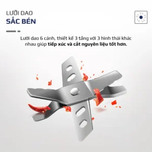 - Công suất xay 1000W, tốc độ xay 21.000 vòng/phút kết hợp với lưỡi dao sắc bén đảm bảo xay nhuyễn mịn mọi loại nguyên liệu.
