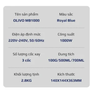- Nếu bạn đang tìm kiếm một chiếc máy xay sinh tố đa năng, tiện lợi và giá cả hợp lý thì máy xay sinh tố đa năng 3 cốc OLIVO MB1000 là một lựa chọn tuyệt vời dành cho bạn.