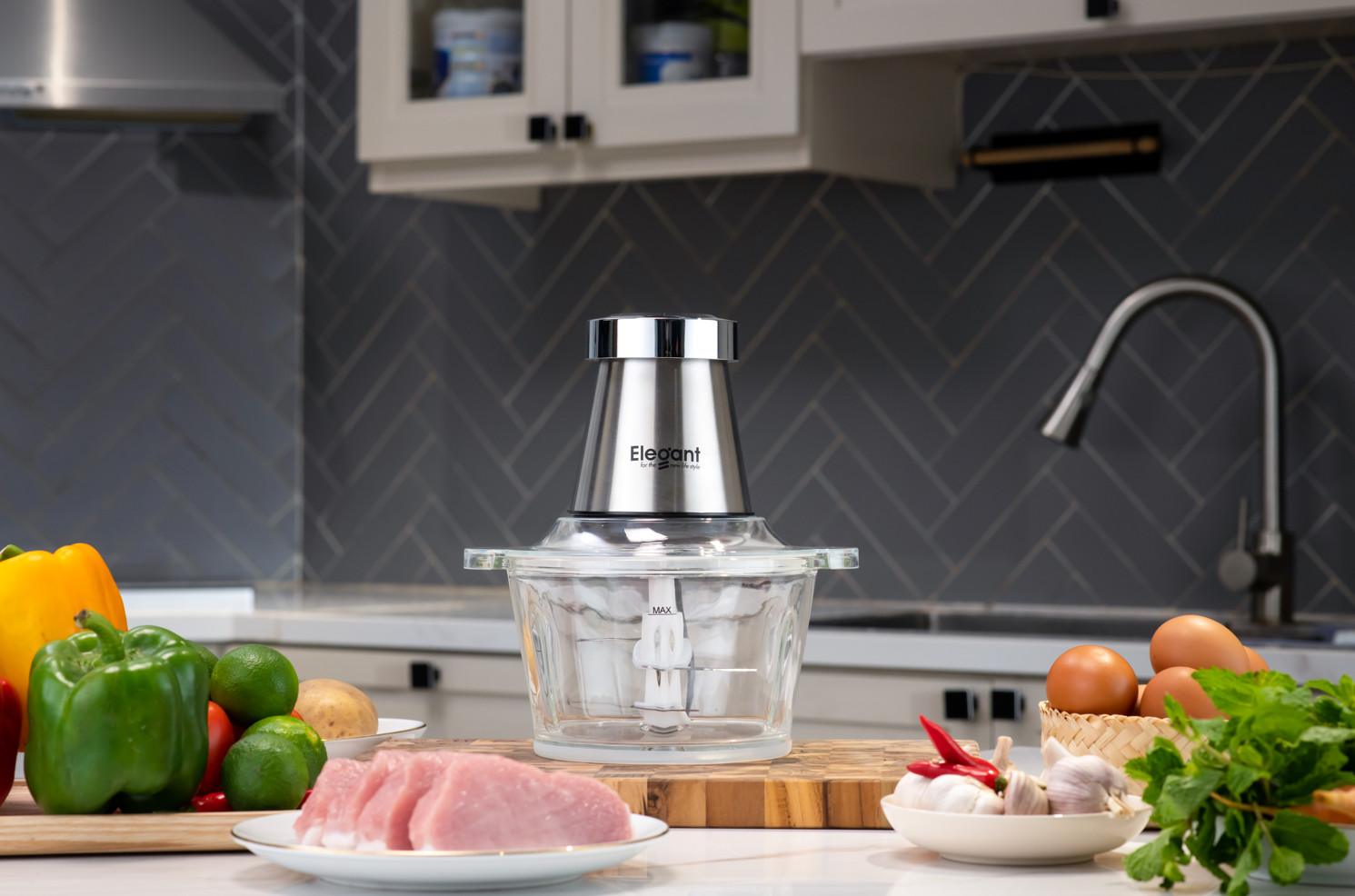 - Máy xay thịt đa năng ELEGANT với công suất mạnh mẽ 350W xay các loại thực phẩm hiệu quả, nhanh chóng. Đặc biệt việc tự xay đảm bảo vệ sinh thực phẩm.