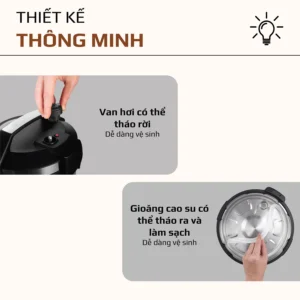 - Tiếp đó là sự kết hợp hoàn hảo giữa van phao cùng gioăng cao su giúp cho thực phẩm chống trào tràn ra ngoài trong quá trình nấu, không còn lo sợ bị bỏng do thực phẩm nóng trào ra ngoài. Rất an toàn mà lại dễ vệ sinh.