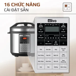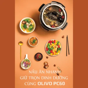 - Những chế độ nấu ăn cơ bản của nồi áp suất OLIVO PC60 đó là: Thịt, Gia Cầm, Súp, Các Loại Đậu, Gạo Trắng, Gạo Lứt, Ngũ Cốc, Hầm Rau Củ, Nấu Chậm, Sữa Chua, Đun Sôi, Hầm Khoai Tây, Lẩu, Xào, Xướng, Hâm Nóng.