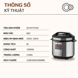 - Với dung tích lòng nồi lớn tới 6 lít OLIVO PC60 là một trong những nồi áp suất đa năng có dung tích lớn nhất trên thị trường hiện nay