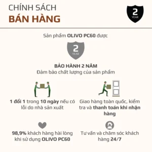 - Nhưng khi sử dụng OLIVO PC60 vấn đề thất thoát nhiệt năng sẽ được giảm thiểu tối đa, thời gian đun nấu nhanh cũng giúp tiết kiệm điện.