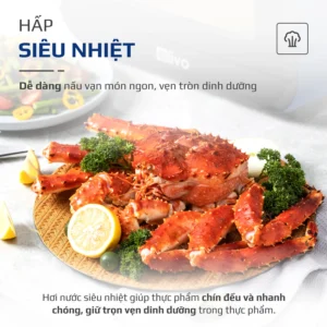 - Với công nghệ phun hơi nước siêu nhiệt giúp món ăn chín đều, giữ được độ mềm ẩm và vị ngọt tự nhiên của thực phẩm.