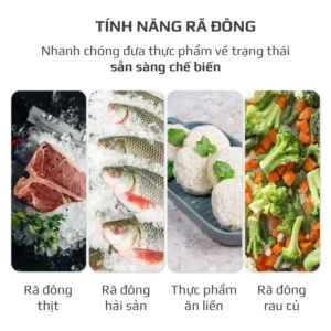 - Thực phẩm đông đá được rã đông một cách nhanh chóng nhưng không gây hiện tượng chín thực phẩm như những sản phẩm khác trên thị trường.