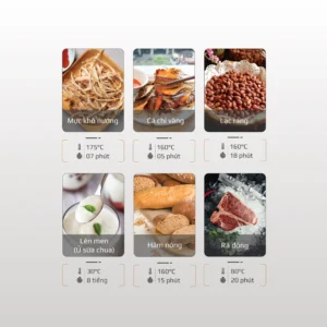 Tiết kiệm thời gian: Các chế độ đã được cài đặt sẵn thời gian và nhiệt độ phù hợp cho từng loại thực phẩm, giúp bạn tiết kiệm thời gian chuẩn bị và nấu nướng. Bạn chỉ cần chọn chế độ và nhấn nút khởi động.