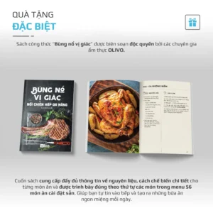 - Khám phá thế giới ẩm thực đa dạng với cuốn sách công thức “Bùng nổ vị giác”, được biên soạn tỉ mỉ bởi các chuyên gia ẩm thực OLIVO. Với 56 công thức được sắp xếp khoa học theo đúng trình tự 56 món ăn trong menu bảng điều khiển.