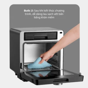 Tận dụng hơi nước siêu nhiệt làm mềm các vết bám bẩn, dầu mỡ trên thành nồi sẽ được làm mềm, có thể lau sạch dễ dàng. Đây cũng là ưu điểm của nồi chiên hấp đa năng khi so với những dòng nồi chiên thông thường.