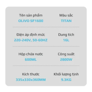 Phiên bản đặc biệt, cao cấp nhất của hãng nồi chiên hấp đa năng OLIVO SF1600 với cải tiến vượt trội được trang bị màn hình OLED hiện đại, hiển thị hình ảnh sống động, sắc nét, tích hợp tới 70 chế độ, chức năng cài đặt sẵn gần gũi với ẩm thực Việt. Nhờ công nghệ hiện đại, nồi chiên hấp còn giúp bạn chế biến các món ăn một cách lành mạnh, giảm thiểu lượng dầu mỡ, bảo toàn tối đa chất dinh dưỡng, mang đến những bữa ăn ngon miệng và tốt cho sức khỏe cho cả gia đình.