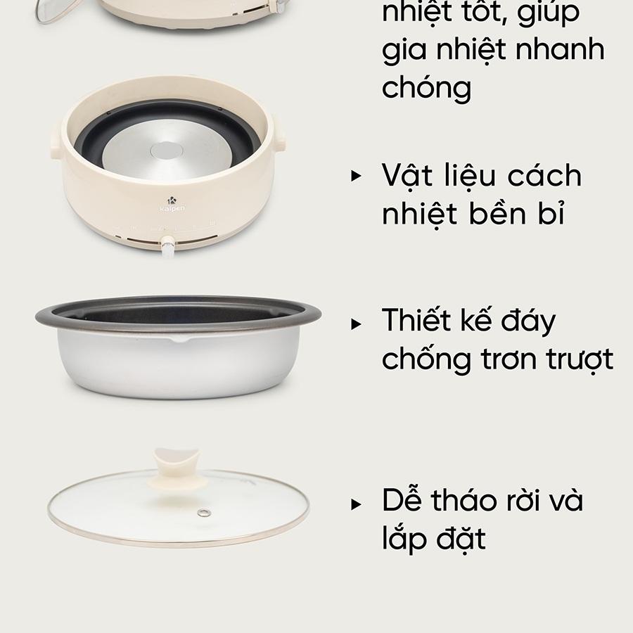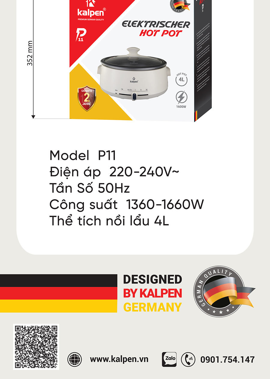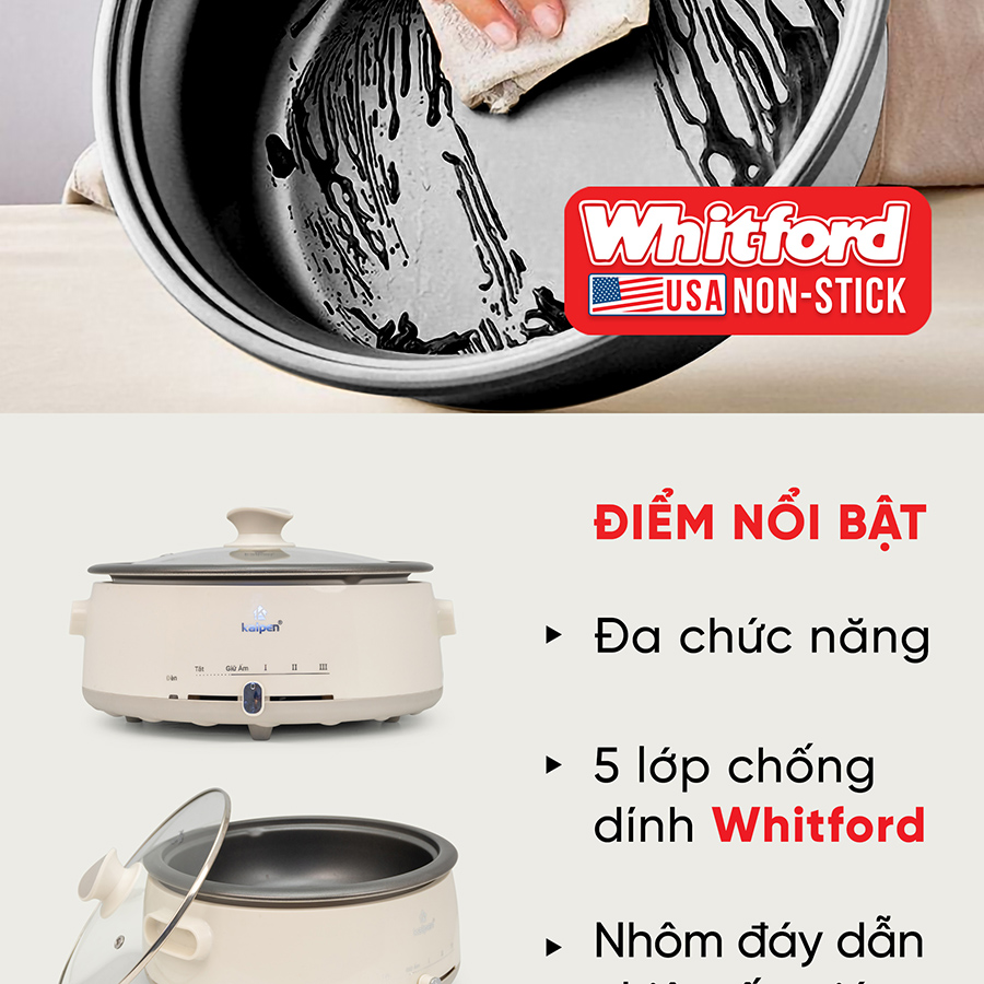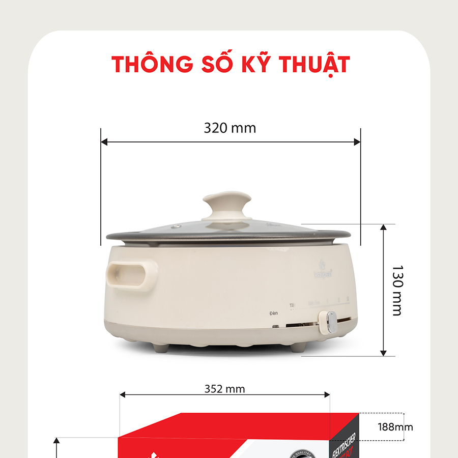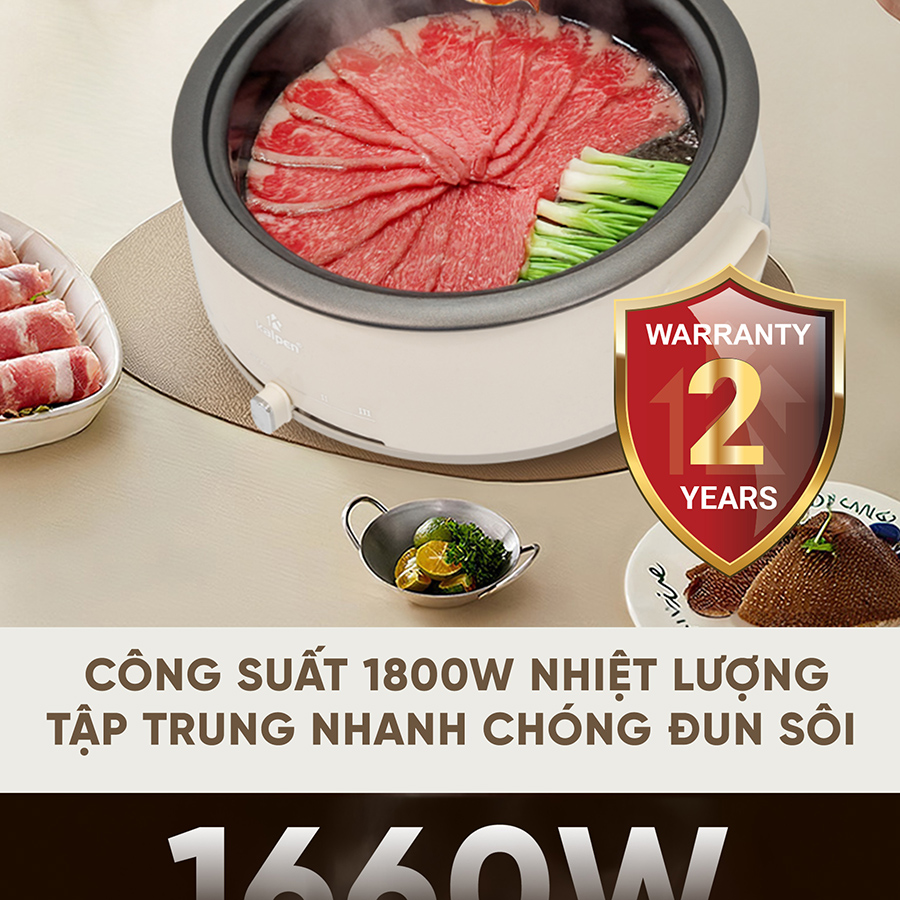NỒI LẨU ĐIỆN KALPEN 4L KHAY LẨU THÁO RỜI, 1660W