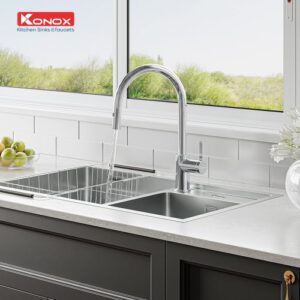 - Tay vòi ngang tối ưu không gian bàn bếp