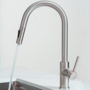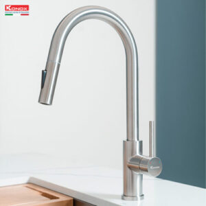 – Chức năng: Nóng lạnh + Rút dây + Đầu vòi khớp xoay + 2 chức năng Sprayer (Dòng chảy phun mưa, tạo bọt khí) + Xoay 360 độ